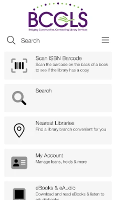 Access BCCLS Libraries from your Android phone or tablet. Find the nearest library, manage your account, search the catalog, renew and reserve materials, display your virtual library card, see upcoming events, explore available online resources, and stay connected to your local library!