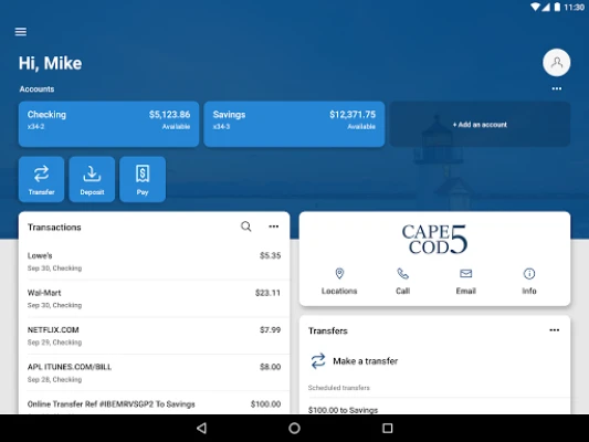 Cape Cod 5 Mobile Banking is a free app that allows you to bank at any time, from anywhere on your Android device. Available to all Cape Cod 5 customers, use the mobile banking app to: check account balances, view transaction history, deposit checks, make transfers, pay bills, manage your budget, set ATM/debit card controls and more! Need account support? Contact the Cape Cod 5 customer support team using the secure messaging conversations feature directly within the app. You can also find Cape Cod 5 locations near you. It is fast, secure and makes life easier by empowering you with the tools you need to manage your personal finances.