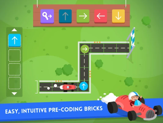 In Code Karts, the objective is to use direction bricks to get the race car to the finish line.