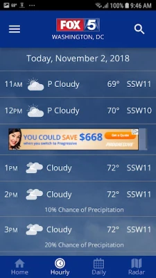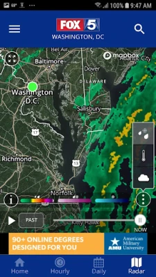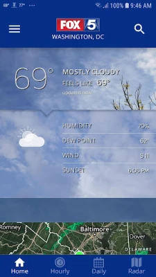 Track your local forecast for Washington D.C., Maryland and Virginia quickly with the free FOX 5 DC Weather app. The new FOX 5 DC Weather App includes a new scroll function that gives you all of the great features you're used to from the app on one easy-to-use screen.