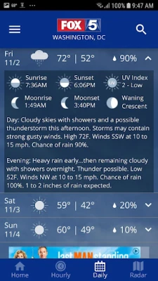 • Receive weather forecast video updates with your favorite FOX 5 DC meteorologists