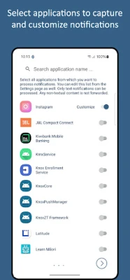 • Keywords: Define Notification Manager only to intercept notifications containing certain keywords for each app.