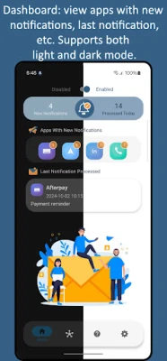 • Daily Notification Dashboard: Track your notification activity with an intuitive dashboard that shows how many notifications have been processed each day.