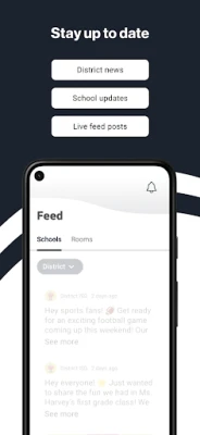 DISTRICT UPDATES In the Live Feed is where you'll find updates from the administration about what's going on in the district right now. Whether that's celebrating a student's success, or reminding you about an upcoming deadline.